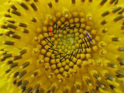 家の庭にひまわりが咲いた。その写真を撮って、らせんを調べてみた。