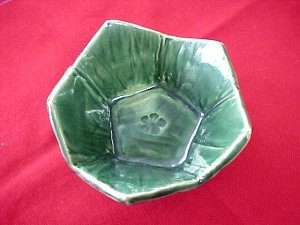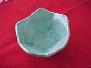 正12面体の話からそれを陶器にしたらという話が出たことがあった。 いつだったかな? 日誌を繰ってみないと思い出せない。 ついに実現したのである。正五角形の形が美しい! 正12面体を二つに分けた形になっていて相応を補い合う関係になって 一対のように見える。 蓋には無理だとあるので正12面体にはならないのだろうか? 少し、つぶれた形(?)になるのでしょうか? 蓋をしたところの写真を是非見たいものです。 それにしても正五角形をモチーフにした陶器はあるのでしょうか? 正六角形のものはあっこさんのところにあったが、正五角形は皆無に ちかいのではないでしょうか? そういう意味でも「織部釉五角鶴小鉢」と「青磁釉五角鶴小鉢」は 貴重な作品ではないでしょうか? 門外漢なので良くわかりません。 いかがなのでしょうか?